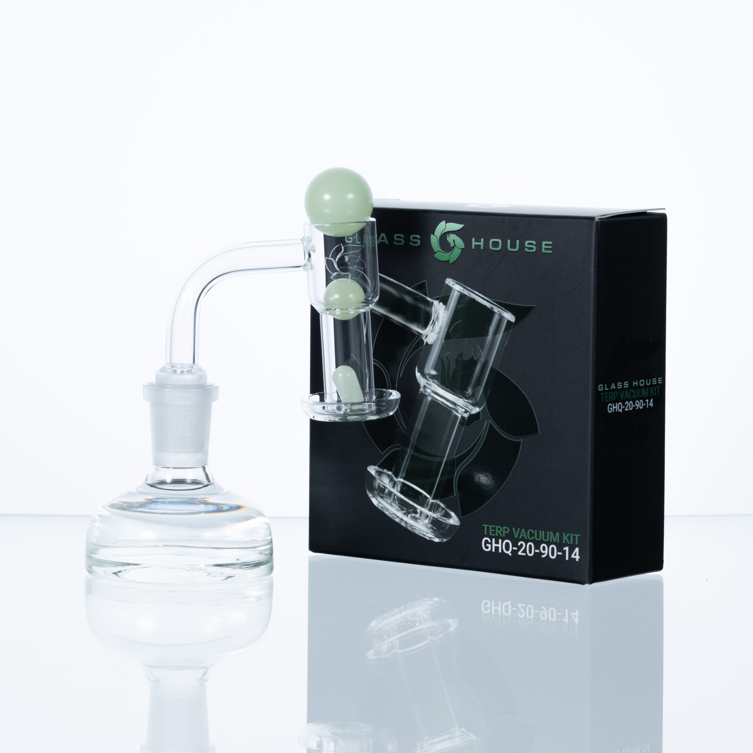 | Content | Terp Vacuum Kit - 20mm Cup with Beveled Top with Glow Capsule Glow 12mm Pearl and Glow 20mm Ball Carb Cap*Largest low-temp dab while lifting more vapor | Female 90 degree 10mm Glass House Banger kit, includes a drop cup, bubble carb cap, and spinner beads. | 45 degree 14mm Fire Set- Flat top 25mm Thick Base Cup Comes With Low Temp Drop in Cup, Spinner Pearls and Angled Hole Carb to Help Spin Pearls. | |||||||||||||||