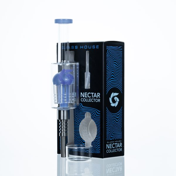 8″ Nectar Straw with a perc and a Titanium 510 Screw-on Nectar Tip. Comes with glass dish
